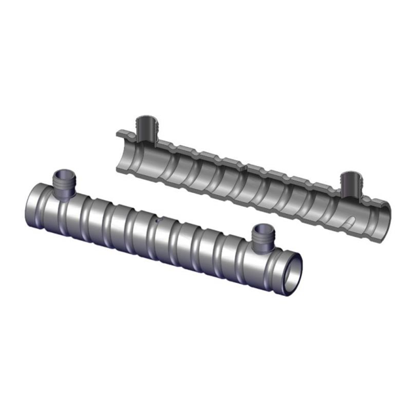 - Proces: turnare de precizie, cu caneluri inelare, nervuri spiralate sau proeminențe punctate pe peretele interior pentru a îmbunătăți interblocare mecanică cu materialul de chituire.